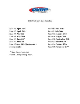 The place to find forms, schedules, points, rules and documents from OVRP. ALL SCHEDULES & CALENDAR LISTINGS ARE SUBJECT TO CHANGE.